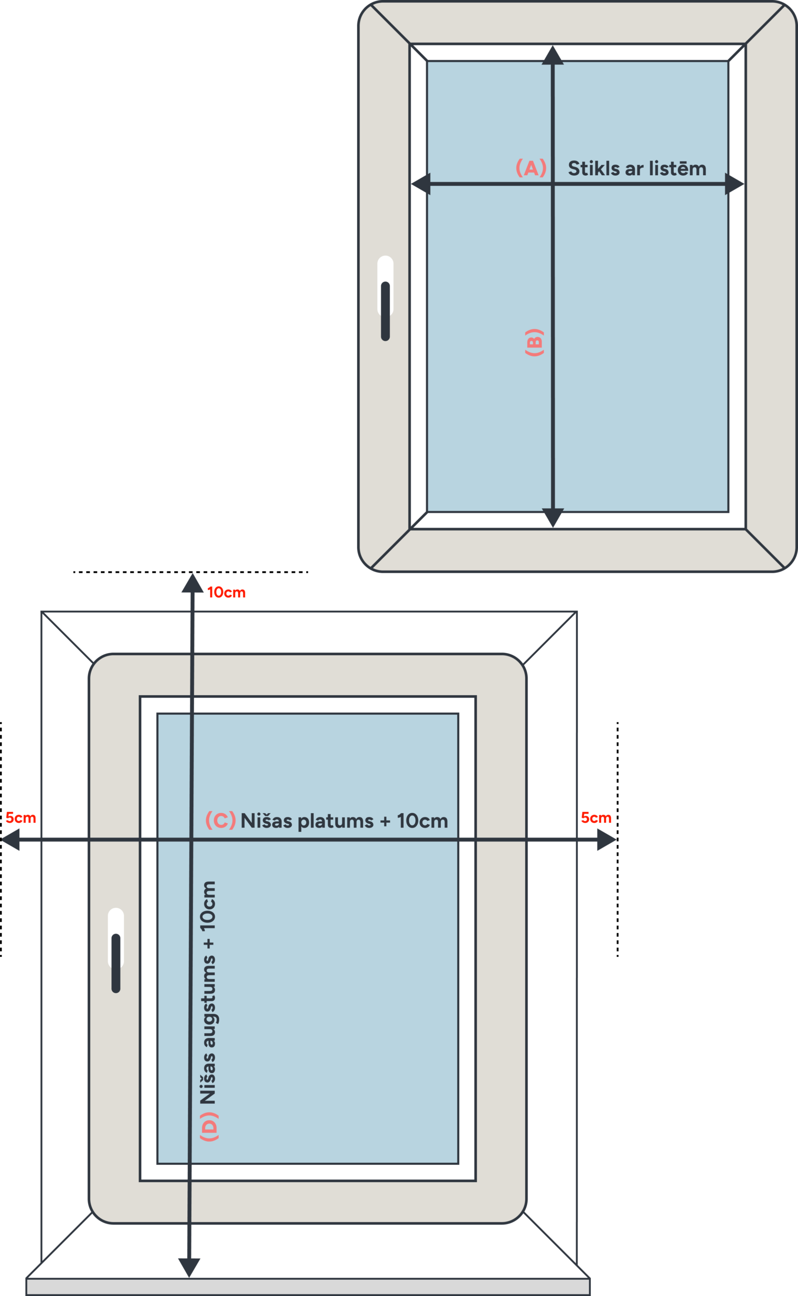Ir svarīgi precīzi izmērīt loga atvērumu. Mērīšanas instrukcijas atrodamas mūsu mājaslapā. Vienmēr mēriet ar metāla mērlenti un pierakstiet izmērus milimetros, lai nodrošinātu maksimālu precizitāti.