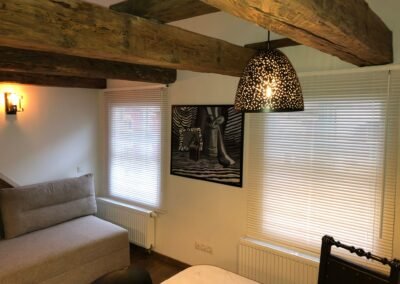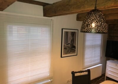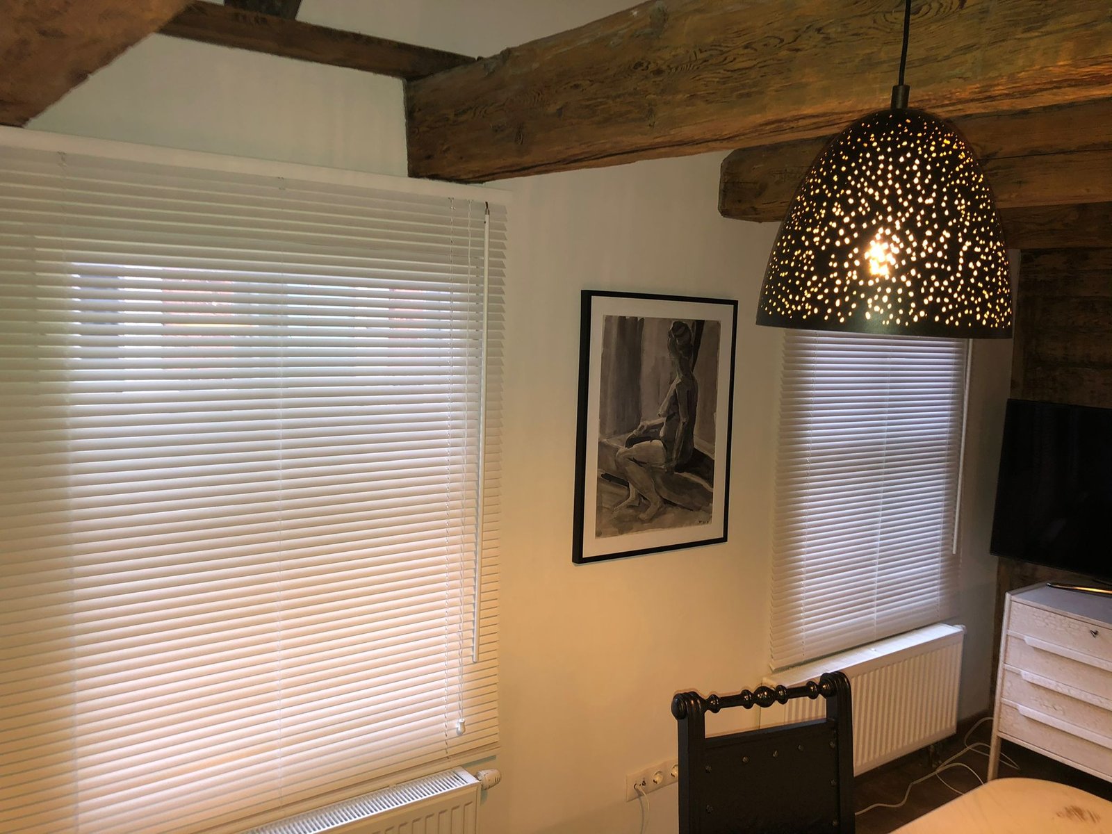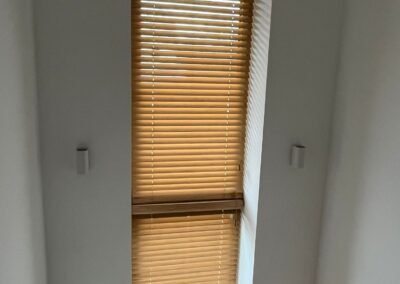 Ideāli piemērotas jebkuras koka žalūzijas. Basswood, Paulownia, Abachi vai Bambuss nodrošinās dabīgu siltumu un elegantu izskatu. Pievienojiet dekoratīvās auduma lentes izsmalcinātākam rezultātam.